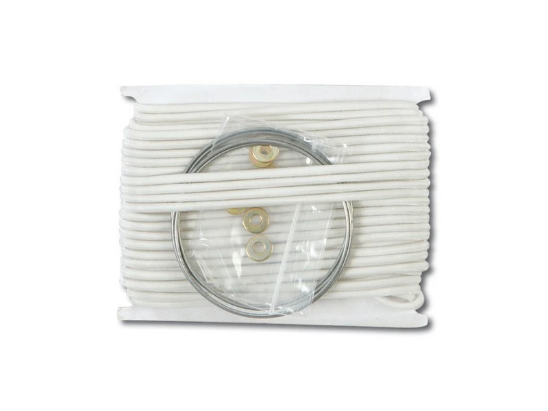 Elastiek voor boogstokken. 13,6 Meter elastiek ter vervanging van het elastiek in boogstokken. Ideaal voor gebroken of beschadigde elastieken. Inclusief doorvoer-metaaldraad en eindringen.