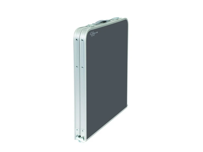 Een compacte en stabiele campingtafel. Deze tafel heeft afneembare poten en is hierdoor eenvoudig en compact in te klappen. Gemaakt van lichtgewicht aluminium. De poten zijn in hoogte verstelbaar (23/45 cm) en hebben stelschroeven voor de fijnafstelling. Ingeklapt (lxbxh): 56x34x3,5 centimeter.