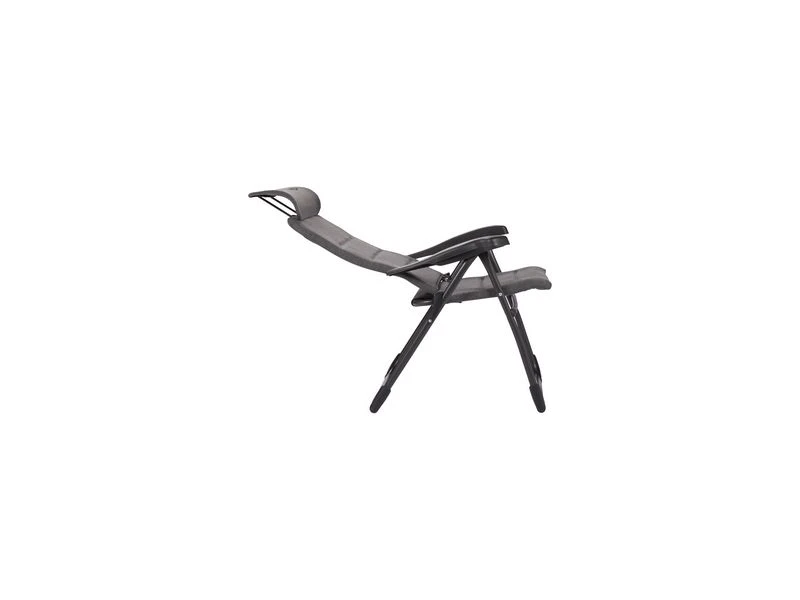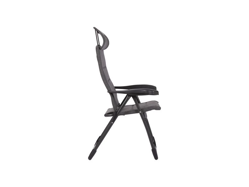 Een lichtgewicht en extra compacte standenstoel. Deze stoel biedt maximaal comfort door de in 7 standen verstelbare rugleuning en een traploos verstelbare hoofdsteun (ruglengte: 65-83 cm). De rugleuning, de zitting en de armleggers zijn ergonomisch gevormd. Deze comfortabele stof is zeer onderhoudsvriendelijk, bestand tegen verkleuring door de zon en waterafstotend door de open celstructuur. Hierdoor is de stoel veel sneller droog dan stoelen met een traditionele schuimvulling. De stoel is voorzien van een U-frame met stabilisatoren en extra dikke buizen voor extra stevigheid en stabiliteit. Deze stoel is door de inschuifbare hoofdsteun extra compact op te bergen. Tot 50% minder pakvolume in vergelijking met andere kampeerstoelen!