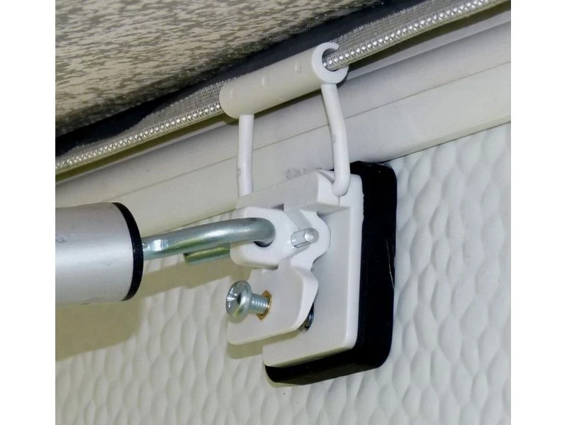 Kunststof adapterset speciaal ontwikkeld voor de Knaus, Wilk en Tabbert caravans vanaf bouwjaar 2011 die voorzien zijn van de luxe wit gelakte tentlijst. Deze tentlijst staat schuin op de zij – en dakplaat. Door deze adapters een SHS blokjes te klemmen kan het frame van de voortent toch gewoon correct en strak afgespannen worden op de zijwand van de caravan.