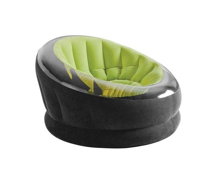 Fraaie opblaasbare stoel, extra comfortabel door betere ondersteuning van de onderrug met verstevigde bodem. Afmetingen: 109x112x69cm, kleur: groen.