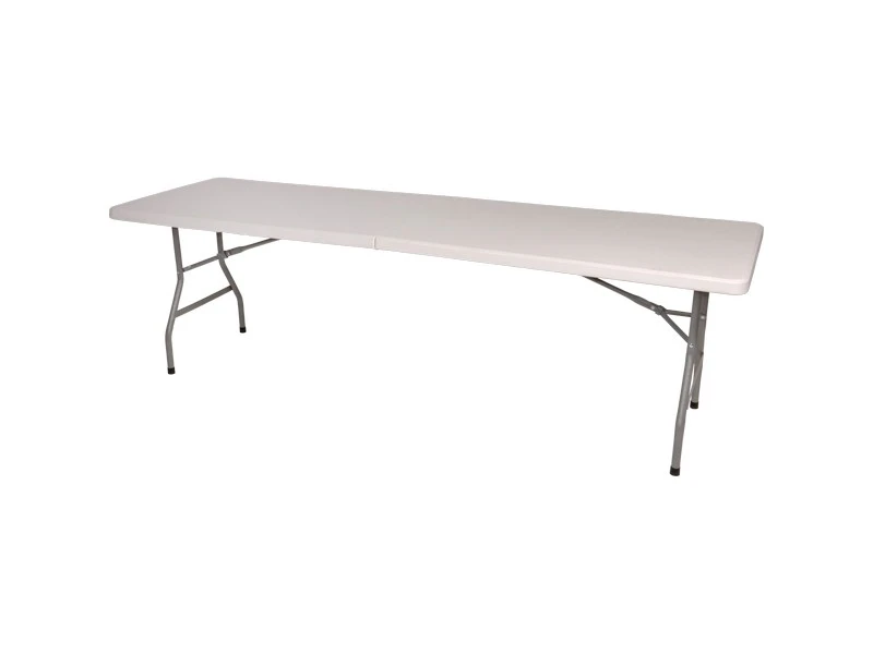 Goed afwasbare tafel, te gebruiken in de tuin, en heel ideaal voor bijvoorbeeld een barbecue. Frame is van staal en het blad is van kunststof.